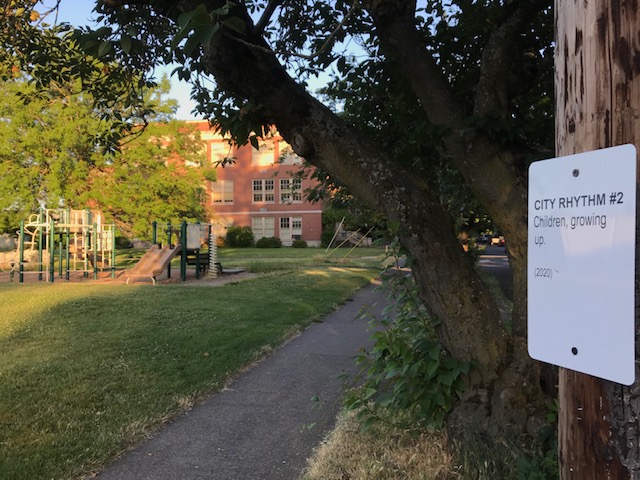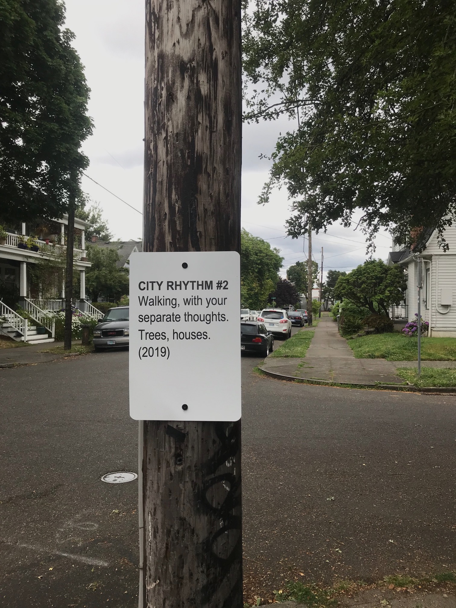 City Rhythm #2 is meant to illuminate our shared environment, shared human experiences, and diverse stories using signs that function as art-gallery labels for the world, bringing what is already there into new focus.